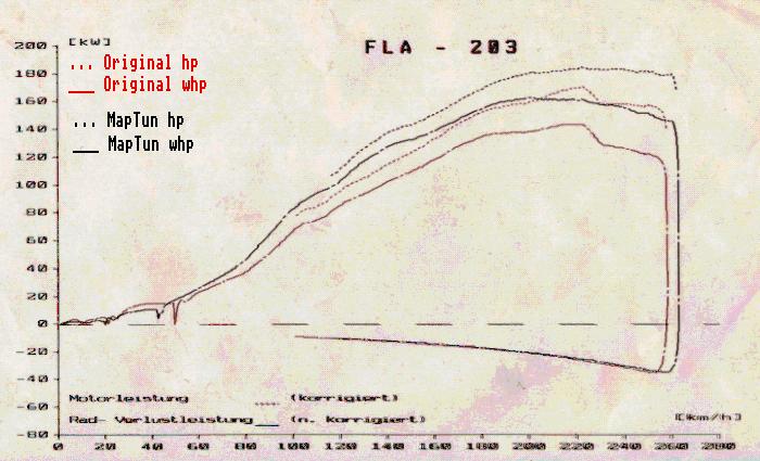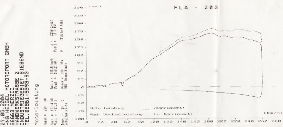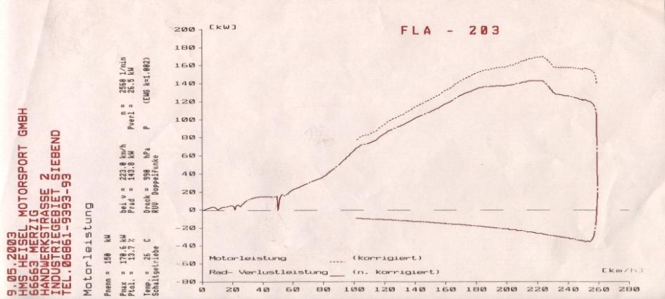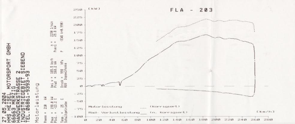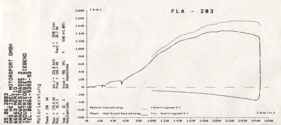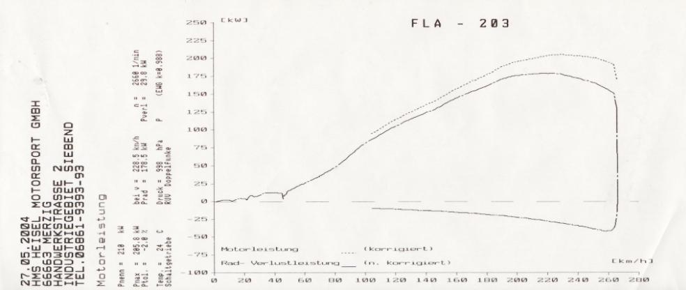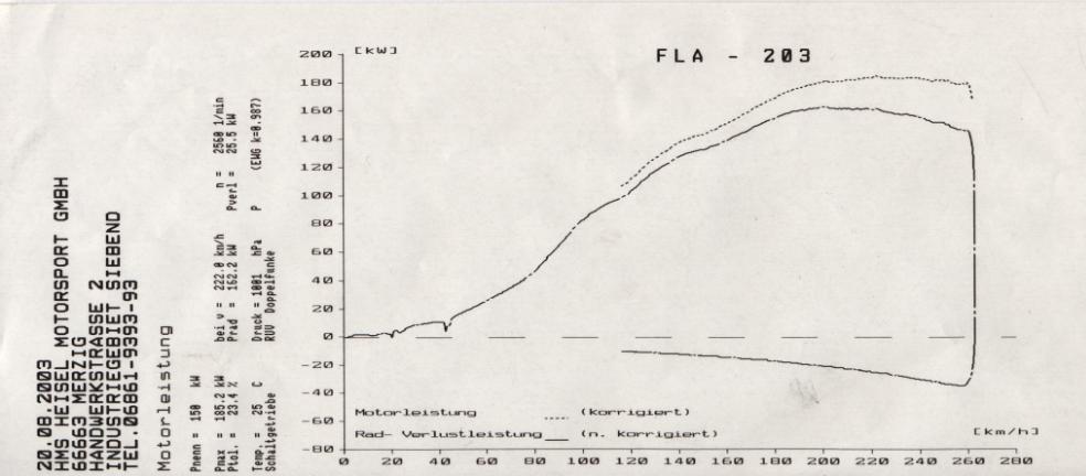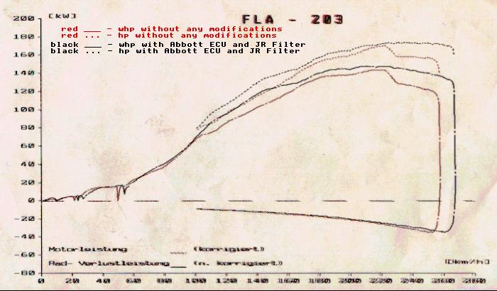 Using the Abbott software, there is a little more power all the way, especially above 5000 rpm (220 kph). But peak hp is just up by 5 hp - far from the promised 40 hp gain.